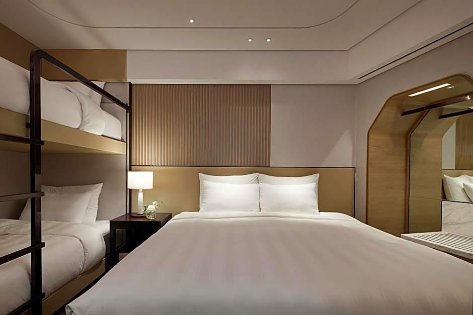 Spacious and modern, this air-conditioned room comes with 1 queen bed and 1 single bed.Each is fitted with a 37-inch flat-screen TV, a personal safe and tea/coffee making facilities. Free bottled water and 24-hour free internet access are provided. Private bathroom has a shower.