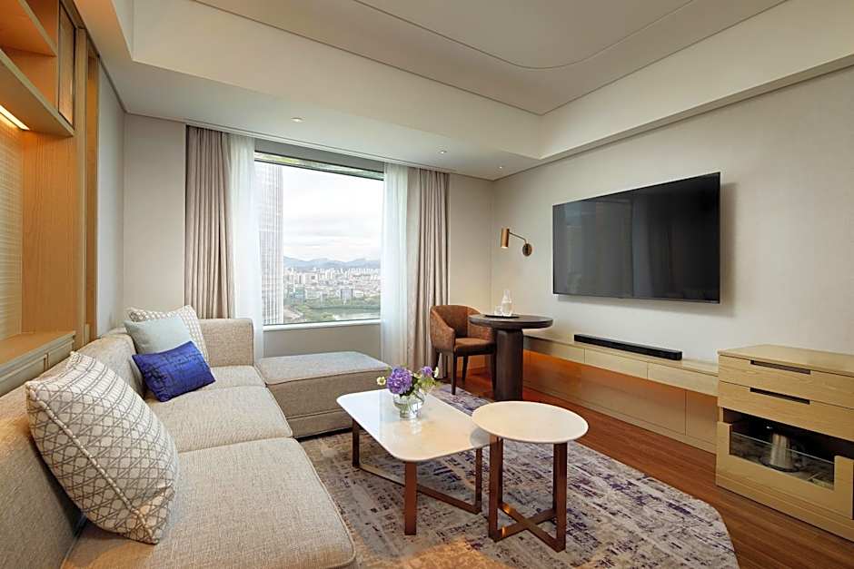 The sauna is a top feature of this suite. This air-conditioned suite comes with 1 living room, 1 separate bedroom and 1 bathroom with a bath. The suite features executive lounge access, a seating area, a dining area, a flat-screen TV with streaming services, as well as lake views. The unit has 1 bed.